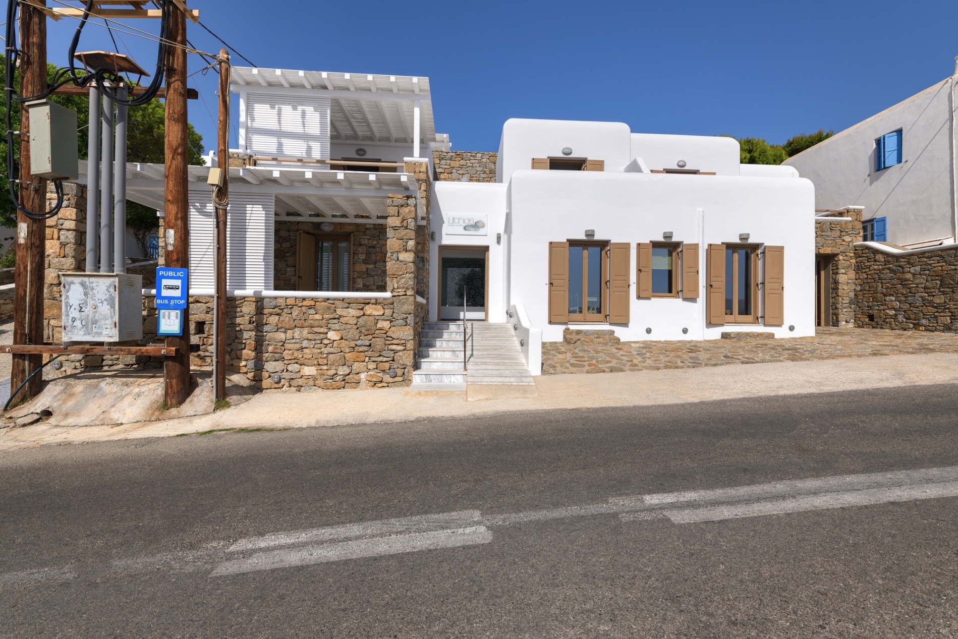 Hotel Lithos Mykonos - Daytime view of the hotel entrance and frontage