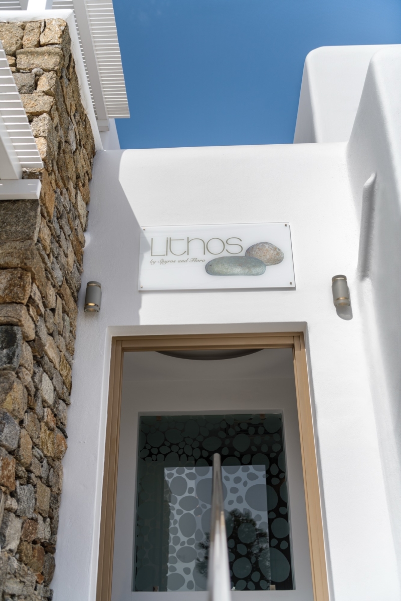 Hotel Lithos Mykonos - Main entrance doorway with Cycladic architecture details